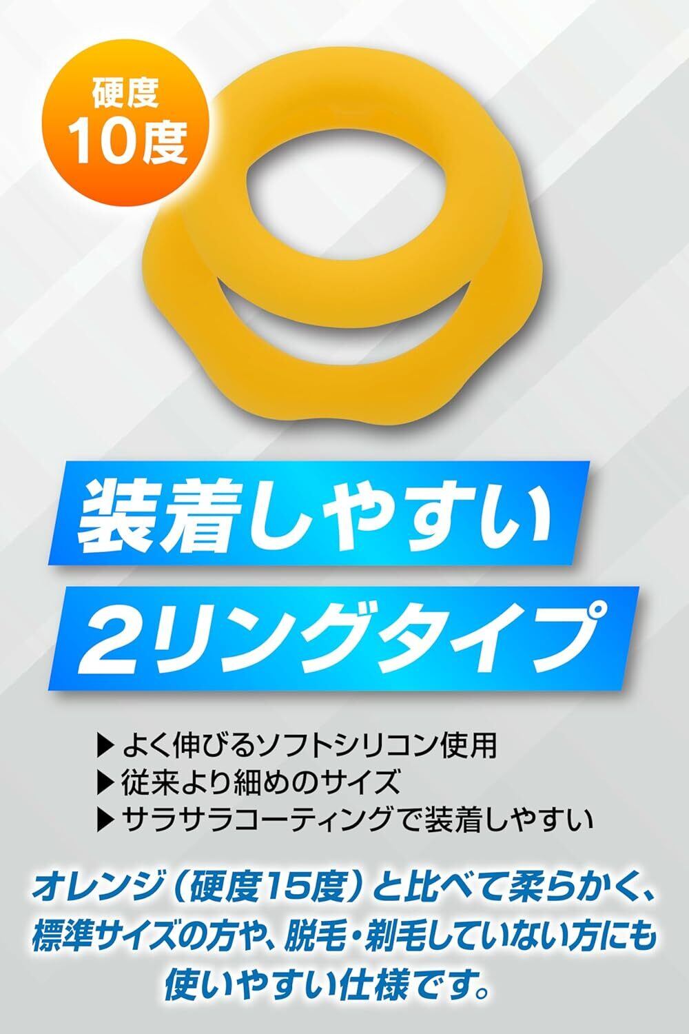 高い柔軟性を持つシリコーン素材を使用しているため、快適な装着感をお楽しみいただけます。手軽に水洗いができ、繰り返し使用できるのも魅力的です。イエローのカラーは明るく、シンプルながらも元気な印象を与えます。硬さは7度で、しっかりとしたフィット感を実現しています。